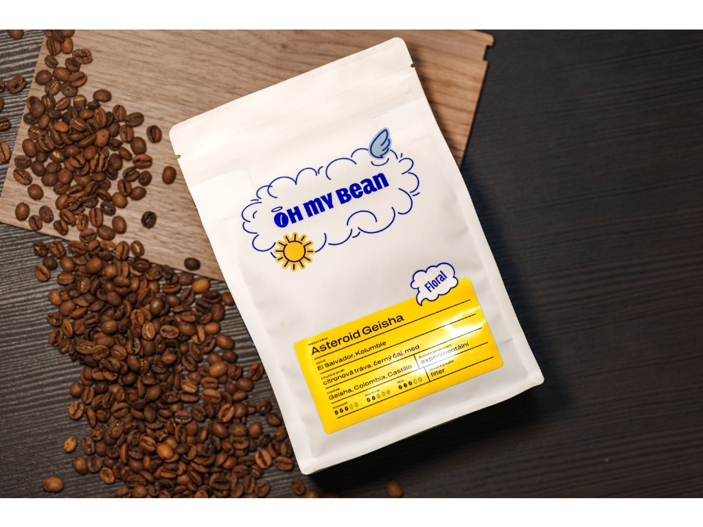 Tak vznikla Asteroid Geisha blend, kde jsme florální jemnost podpořili fermentovaným lotem od Edinsona Argoteho. Jeho káva přináší výraznější linku citronové trávy, větší šťavnatost a energii, která rozsvítila celý chuťový profil, aniž by narušila tu křehkou geishovskou harmonii.